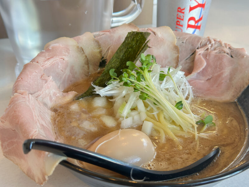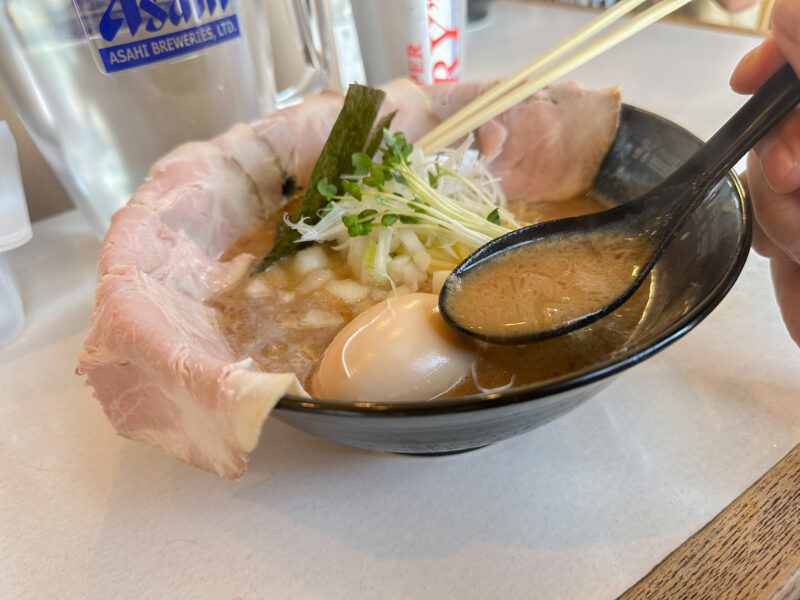 魚介と豚骨の旨みがぎゅっと詰まったスープに、しっとりチャーシュー、濃厚半熟味玉と、全体の完成度が高い一杯でした。