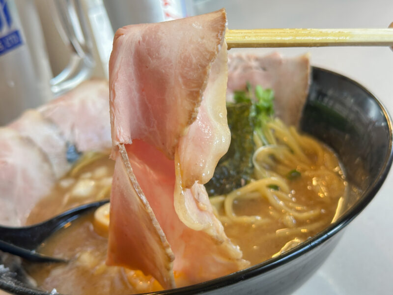 低温調理でしっとりやわらかなレアチャーシューは、肉の旨みがしっかり感じられます。
