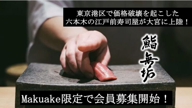 「鮨 裏無垢」では、オープンに先立ちMakuakeを活用し、コース体験の先行販売や超お得な限定会員を募集しています。