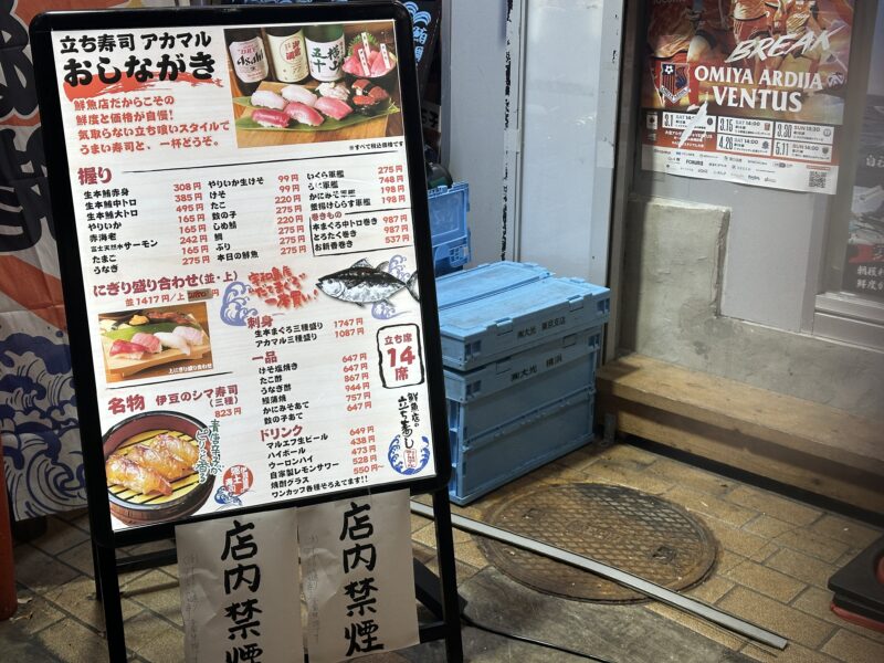 【大宮駅東口1分】「立ち寿司 アカマル」オープン!鮮度抜群の寿司を立ち食いで
